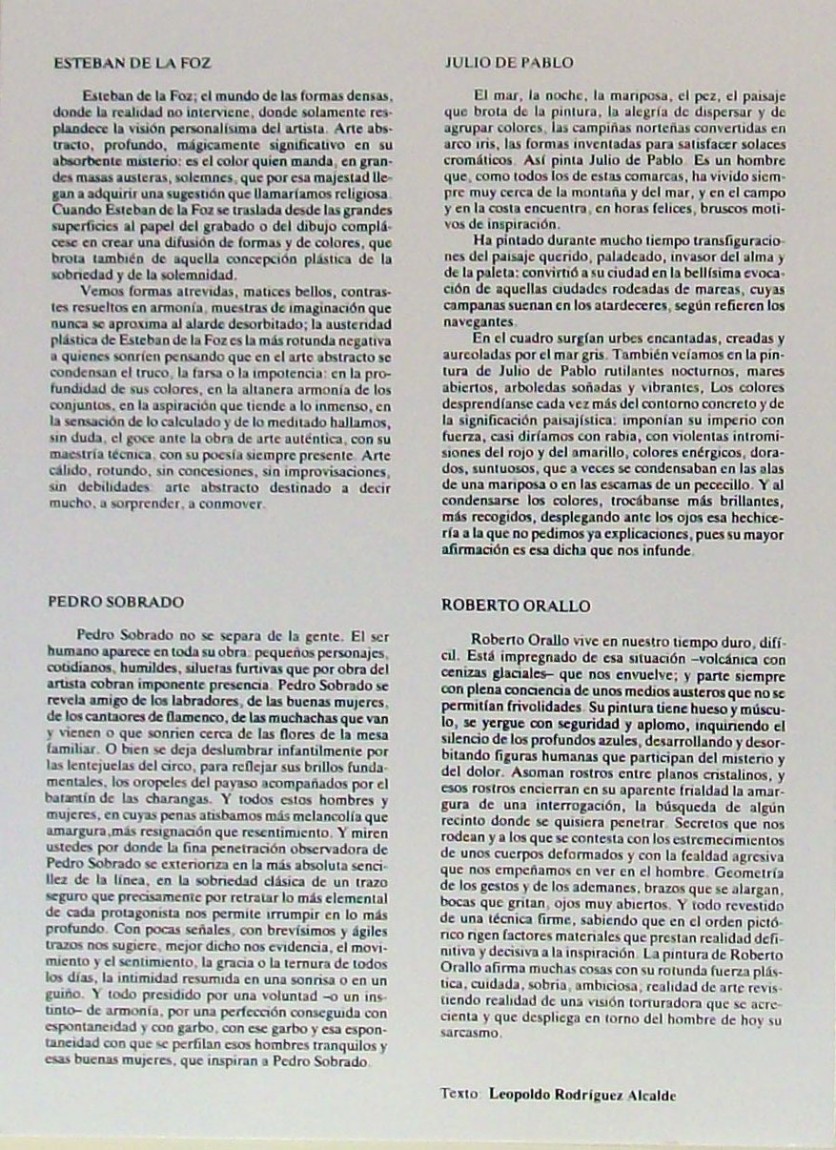 Roberto Orallo, Pedro Sobrado, Esteban de la Foz.Julio de Pablo. Texto: Leopoldo Rodríguez Alcalde